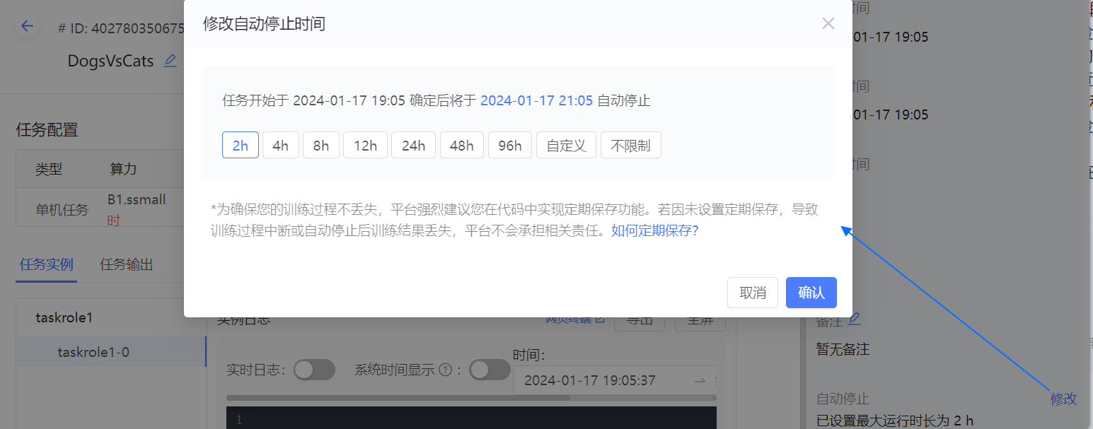 在该页上调整部分配置,便可快速提交离线训练,配置调整可参考 提交单机训练。