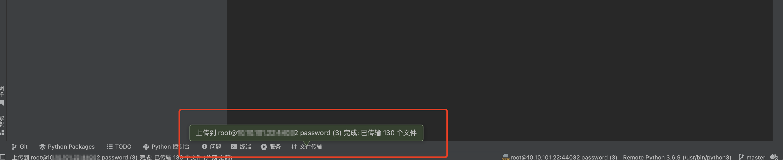- 上传:拖拽本地文件到 PyCharm 中的远程目录下(如图所示),可实现上传。