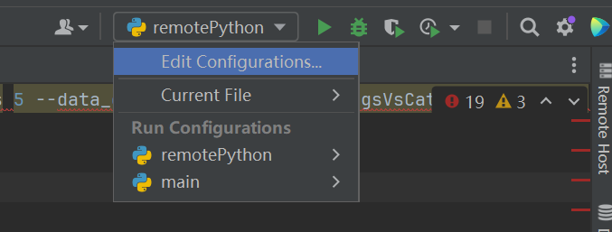 在 Interpreter 右侧的 ... 中按需选择远程 python 解释器。