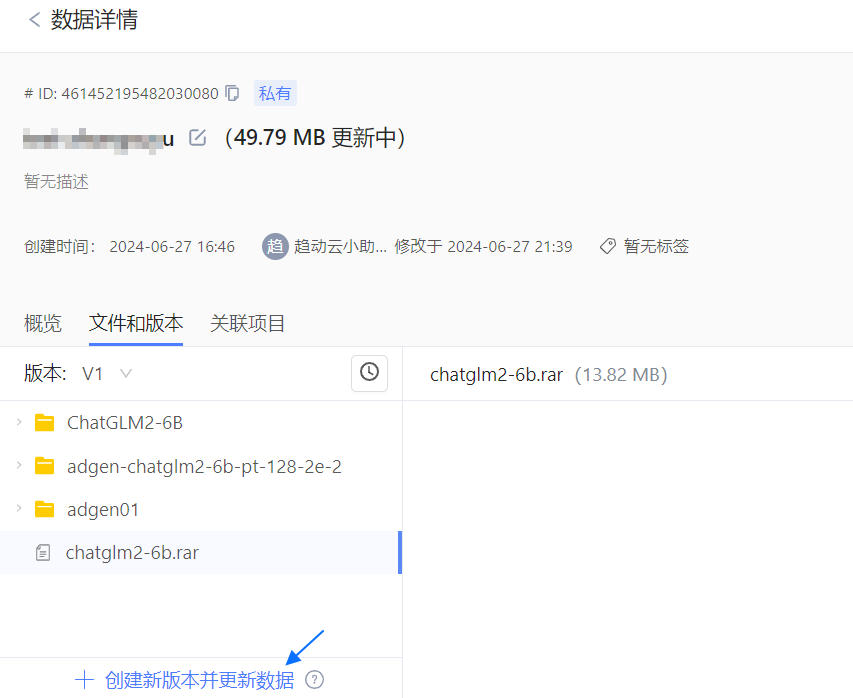 - 目标版本为确定版本,则单击 创建新版本并更新数据 进入。
