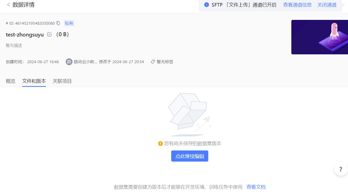 - 当前数据集的 sftp 通道都已关闭。