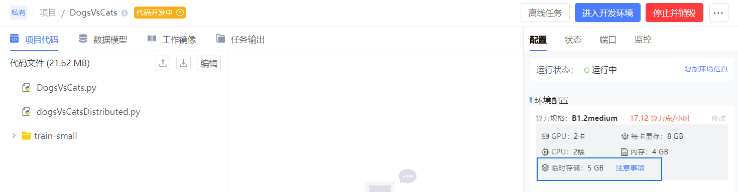 功能上,您可以将其理解为系统盘,用于存储环境(训练环境/开发环境)的系统文件。不同的是,只有您对系统的变更才占用临时存储,而系统由镜像初始化完成后,其本身是不占用临时存储的。