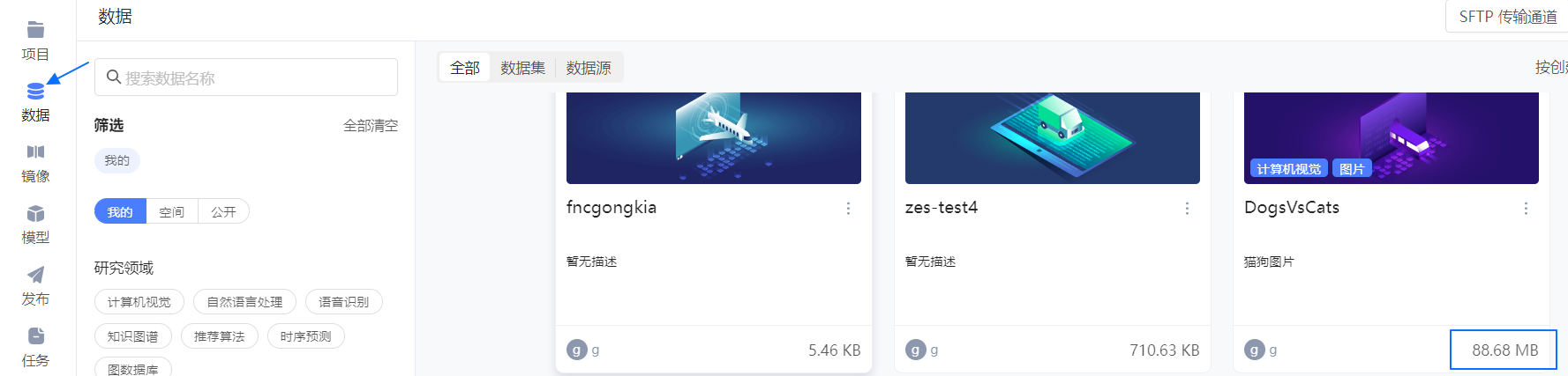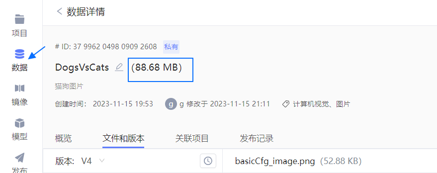 用于训练模型的数据,平台对其提供数据管理的能力,您创建并上传的数据集、从代码或训练结果中导出的数据集都将存放于持久化存储中。