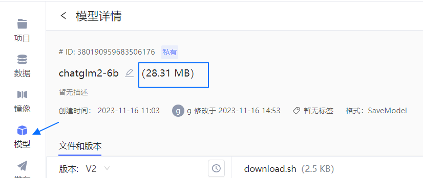 - 用量查看:平台 模型 模块中,进入各模型的 模型详情 页可查看其存储用量。