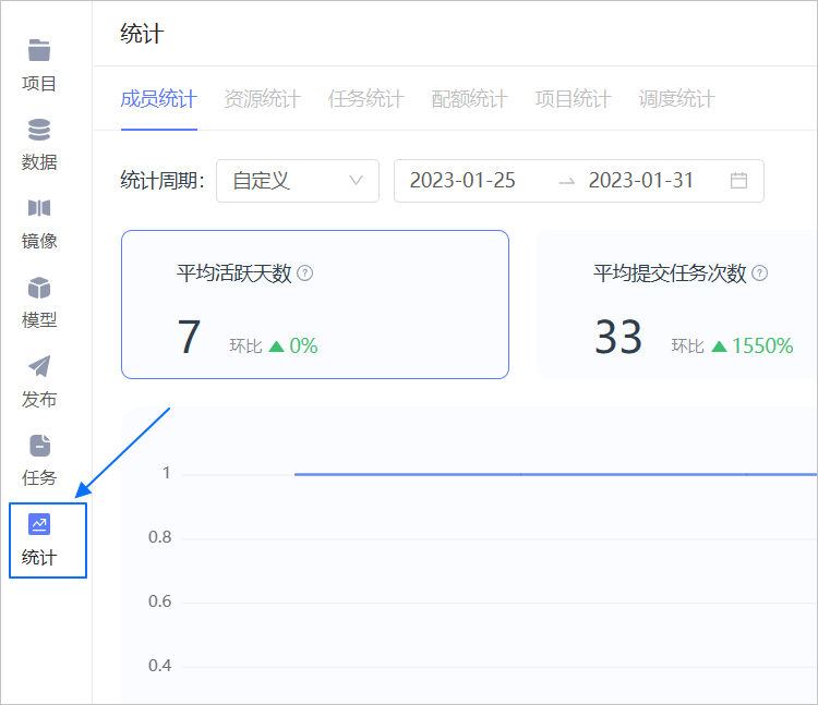 您可以在成员统计界面了解到空间内各成员使用资源、提交任务的情况,便于您对空间成员进行管理。